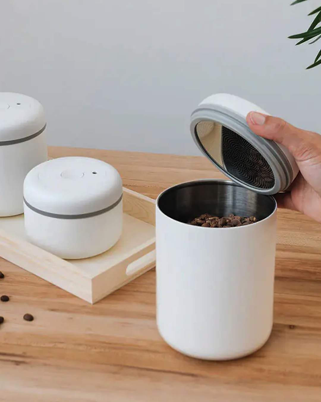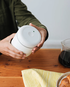 Keep your coffee beans fresh longer with the Fellow Atmos Canister. This airtight container features a unique vacuum lid that removes air to prevent oxidation, extending shelf life by up to 50%. Made with durable 18/8 stainless steel and glass, it uses a simple twist mechanism for easy air removal. The silicone handle ensures a comfortable grip, making it perfect for preserving the flavor and freshness of your coffee, snacks, or herbs.