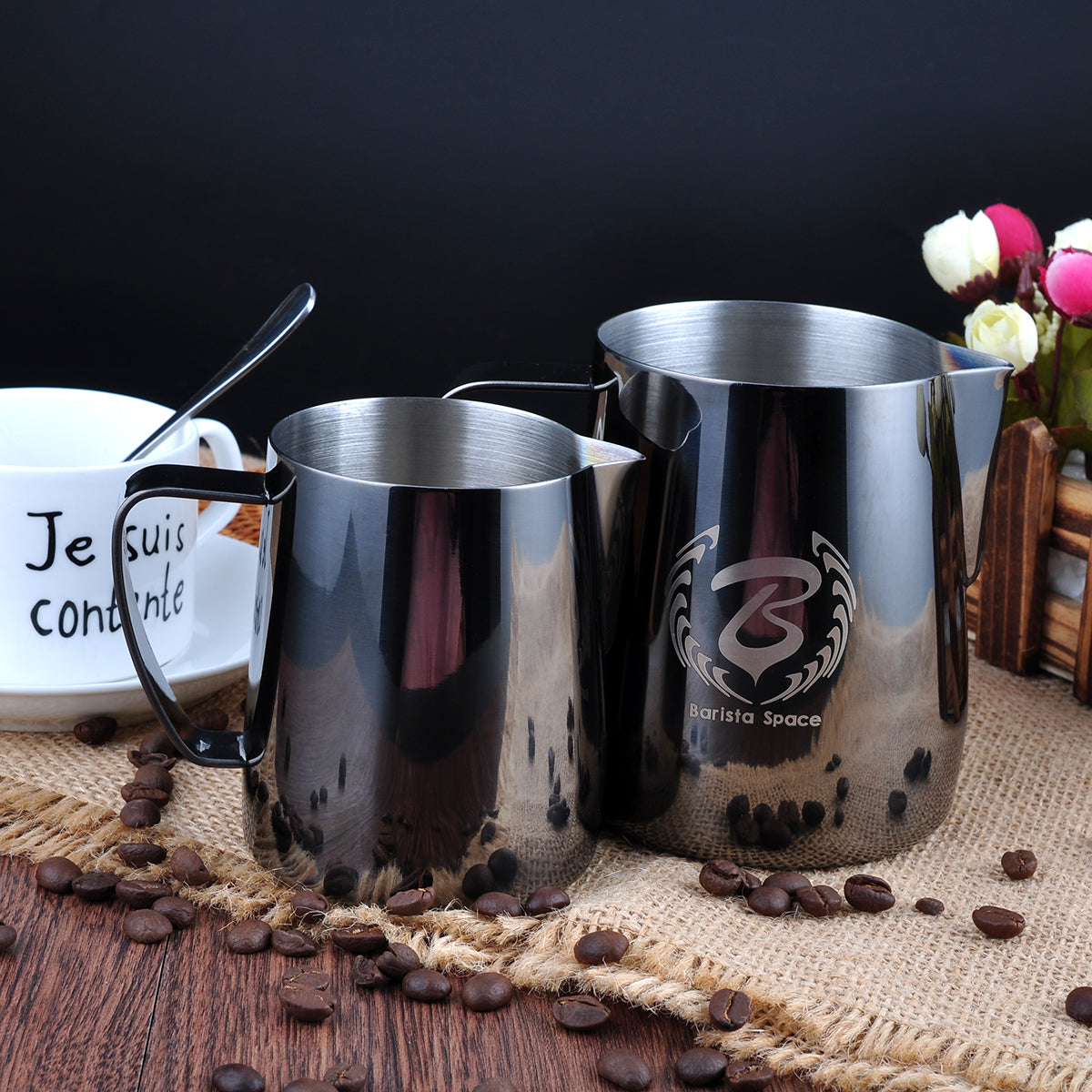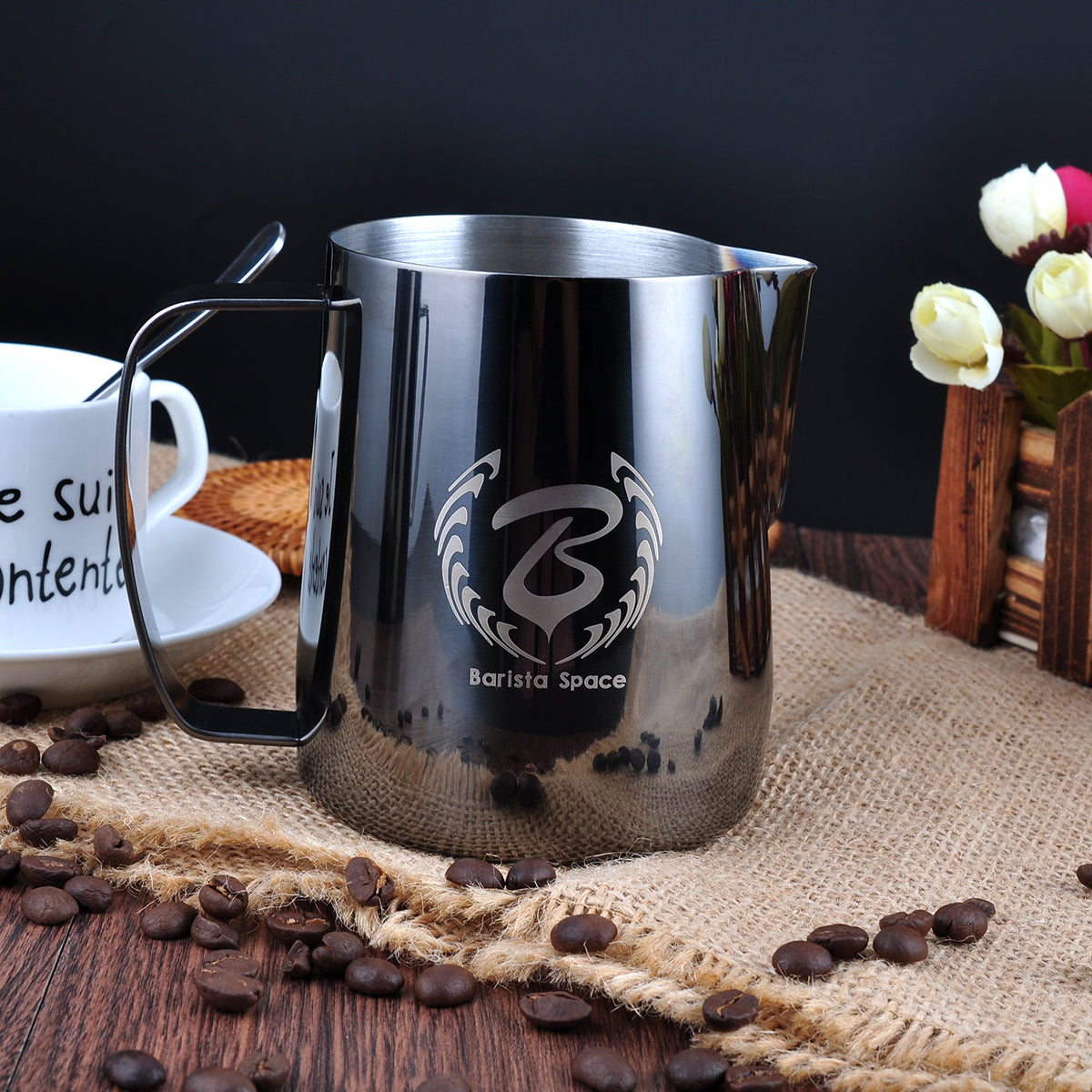 Barista Space milk jug – an essential tool for every barista and latte art lover. Among its advantages, you can name a profiled spout, light weight, and comfortable handle.